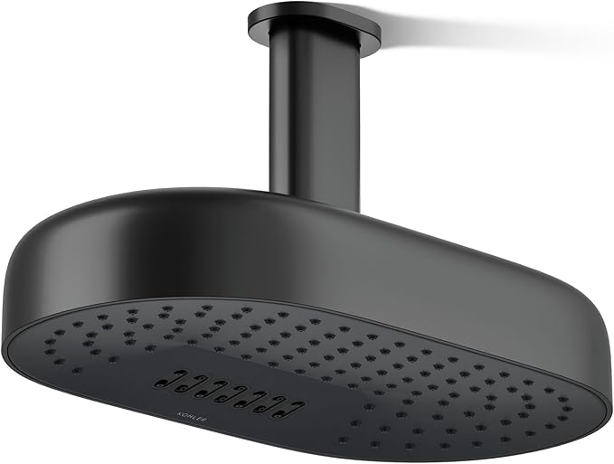 - Dual-Function Shower Head: Oblong rain shower head features a full coverage spray with Katalyst technology, and a deep massage spray to target sore muscles; shower head rainfall has a flow that is ideal for everyday use, 2.5 GPM (9.5 lpm) max flow rate, Matte Black